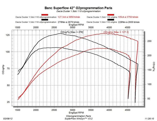 Passage au banc de puissance avant / après.